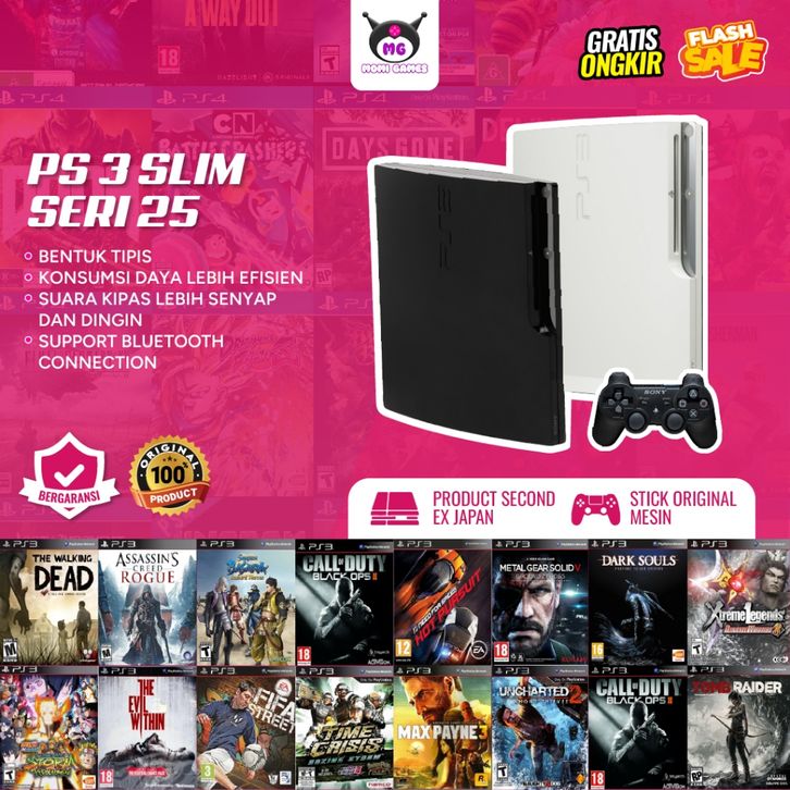 PS 3 Slim Seri 25 Sony Stick Original Mesin Kapasitas 1TB / 500GB / 320GB / 250GB / 160GB Garansi 2 Bulan