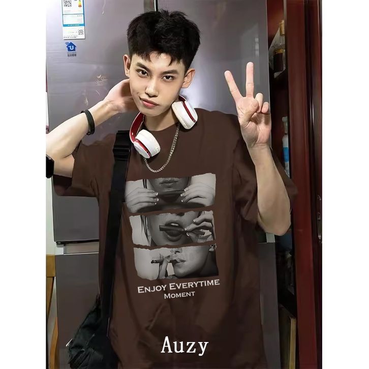 AUZY ENJOY EVERYTIME MOMENT kaos pria wanita atasan Lengan Pendek T-shirt skena baju oversize t shirt distro original 1
