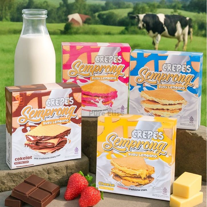 Promo Crepes Semprong Susu Lembang Coklat, Keju, Tiramisu, Orinal, Strawberry, Green Tea, Taro Isi