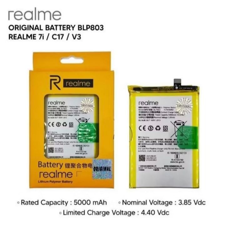 Promo Baterai Hp BATERAI BATRE REALME 7i / C17 / V3 / BLP803 ORIGINAL 100