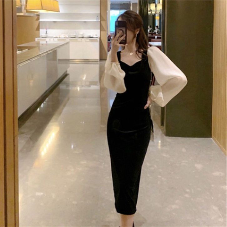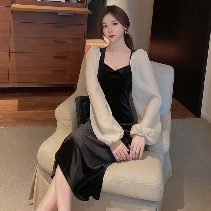 Korean midi bodycon velvet mix sifon dress / vintage dress D19 BY ORIGINAL PRODUCT