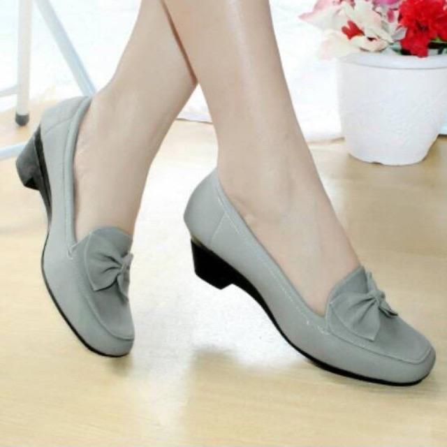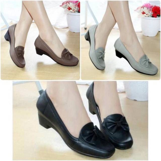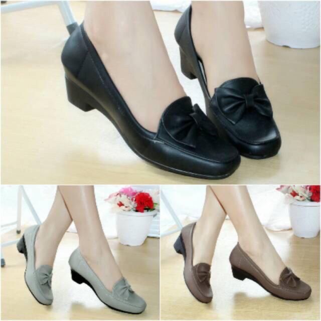 Wedges Sepatu Pantofel Wanita Kulit Hitam Murah Kerja Kantor Formal Pantopel OTC02