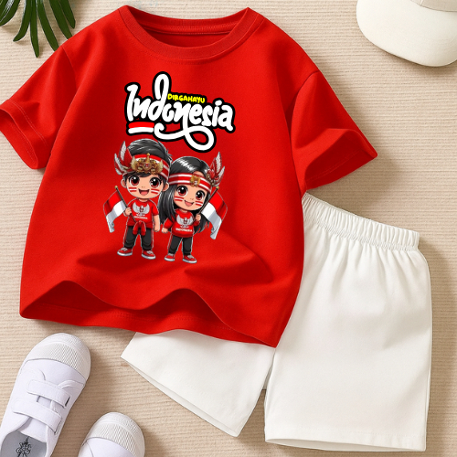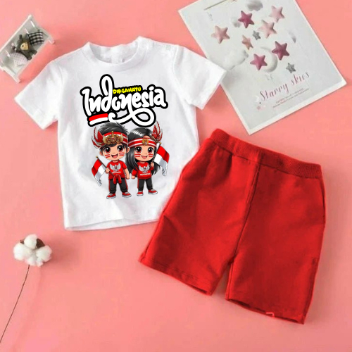 Aibest Setelan Kemerdekaan Anak Kaos Merah & Celana Putih / Set Baju Anak Perempuan & Anak Laki Laki / Outfit 17an Anak