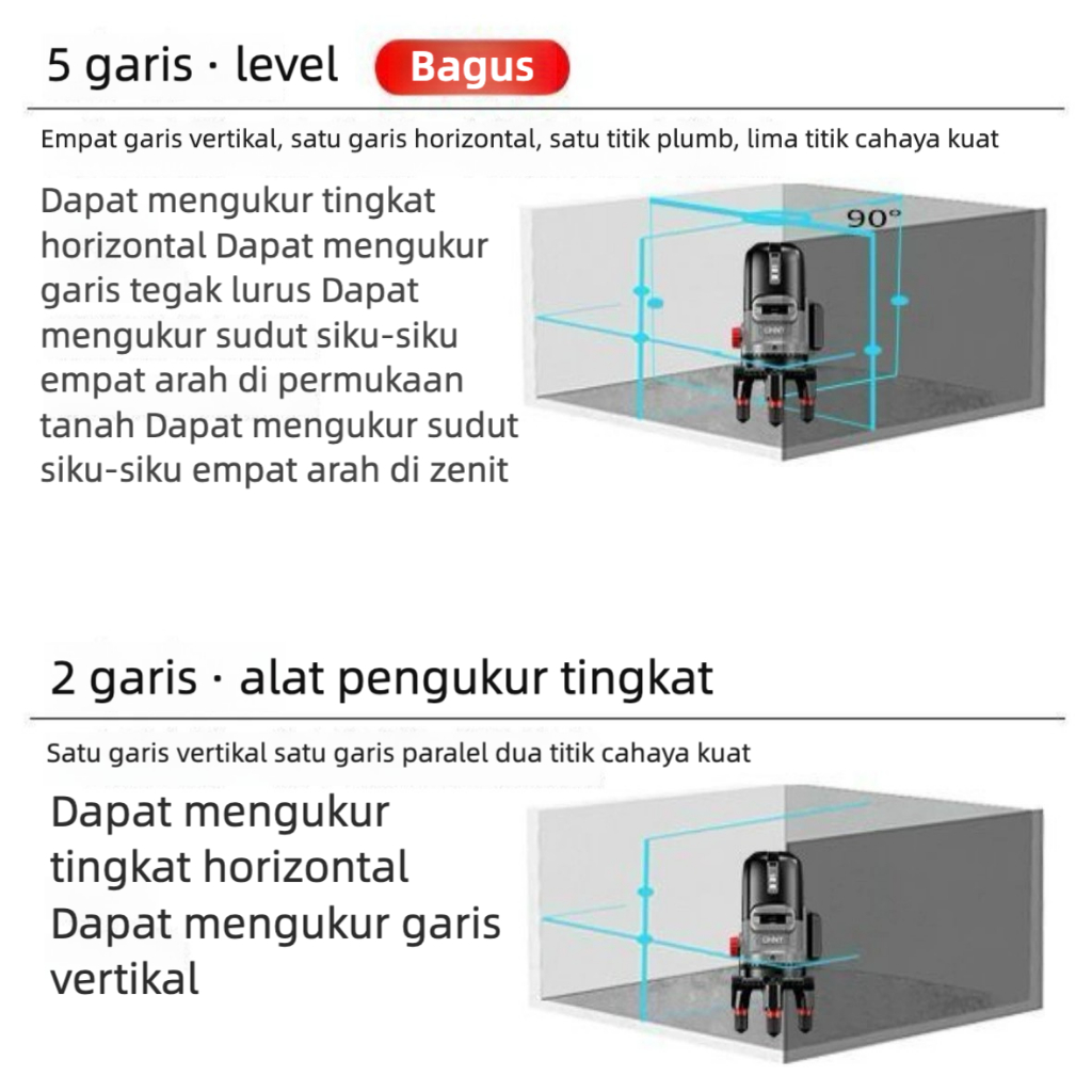 YACHEN Laser Level 2 / 5 Garis Proyektor Self-Leveling Profesional Laser Hijau