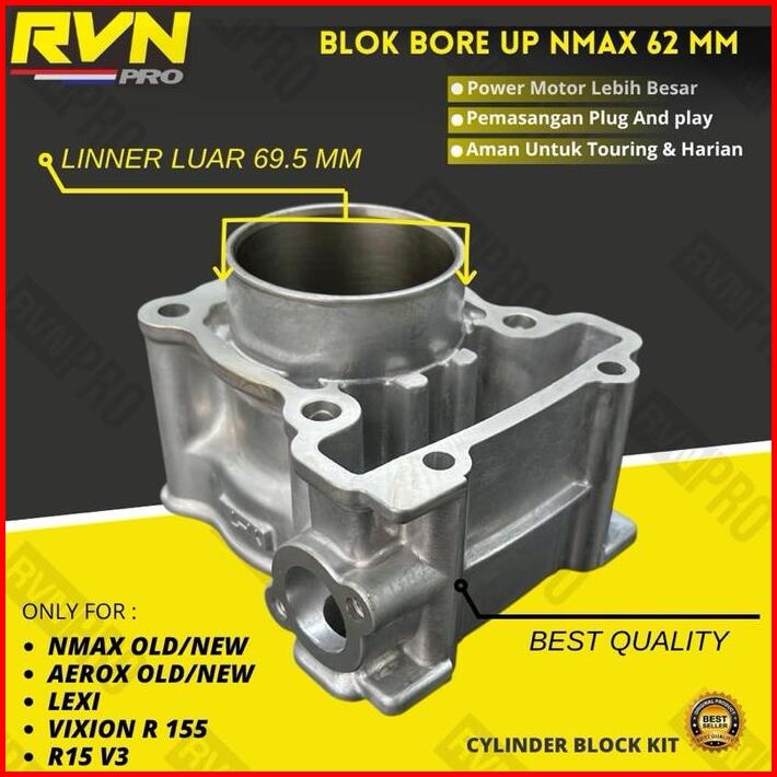 Blok Seher Nmax Aerox Vixion R 155 New Lexi R15 Vva V3 Racing Boreup Bore Up 62mm 63mm 62 63 Mm Rvn Racing Thailand