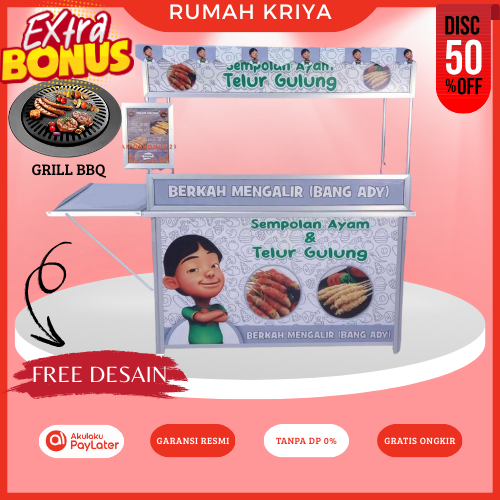 [Star] BOOTH PORTABLE JUALAN / GEROBAK LIPAT / Dagang Booth Portbale Sekat Atap Meja Samping