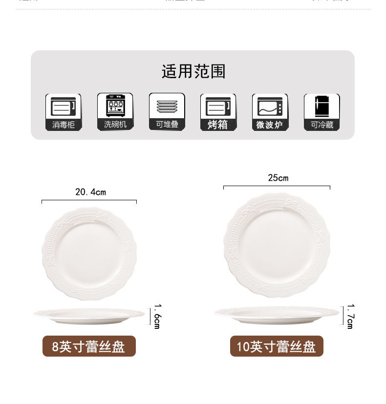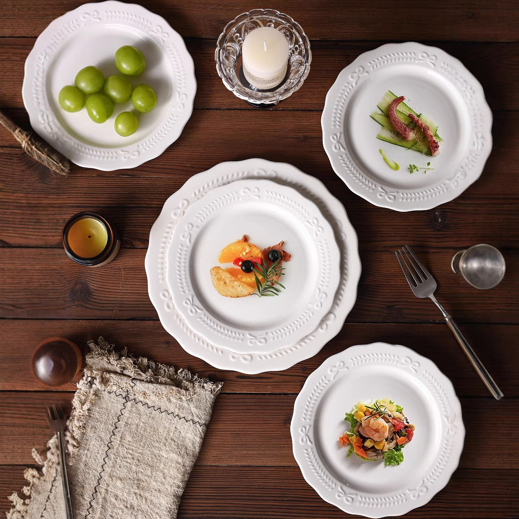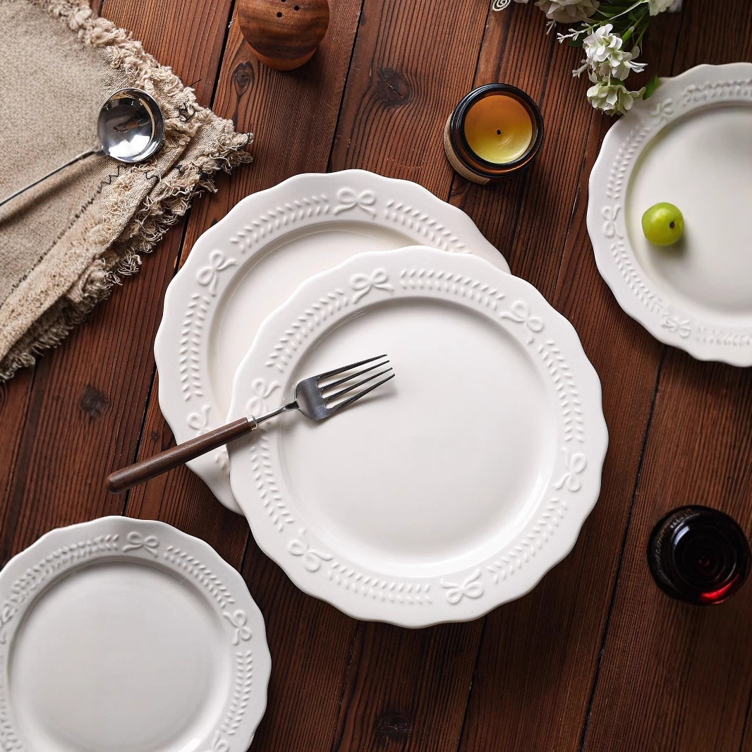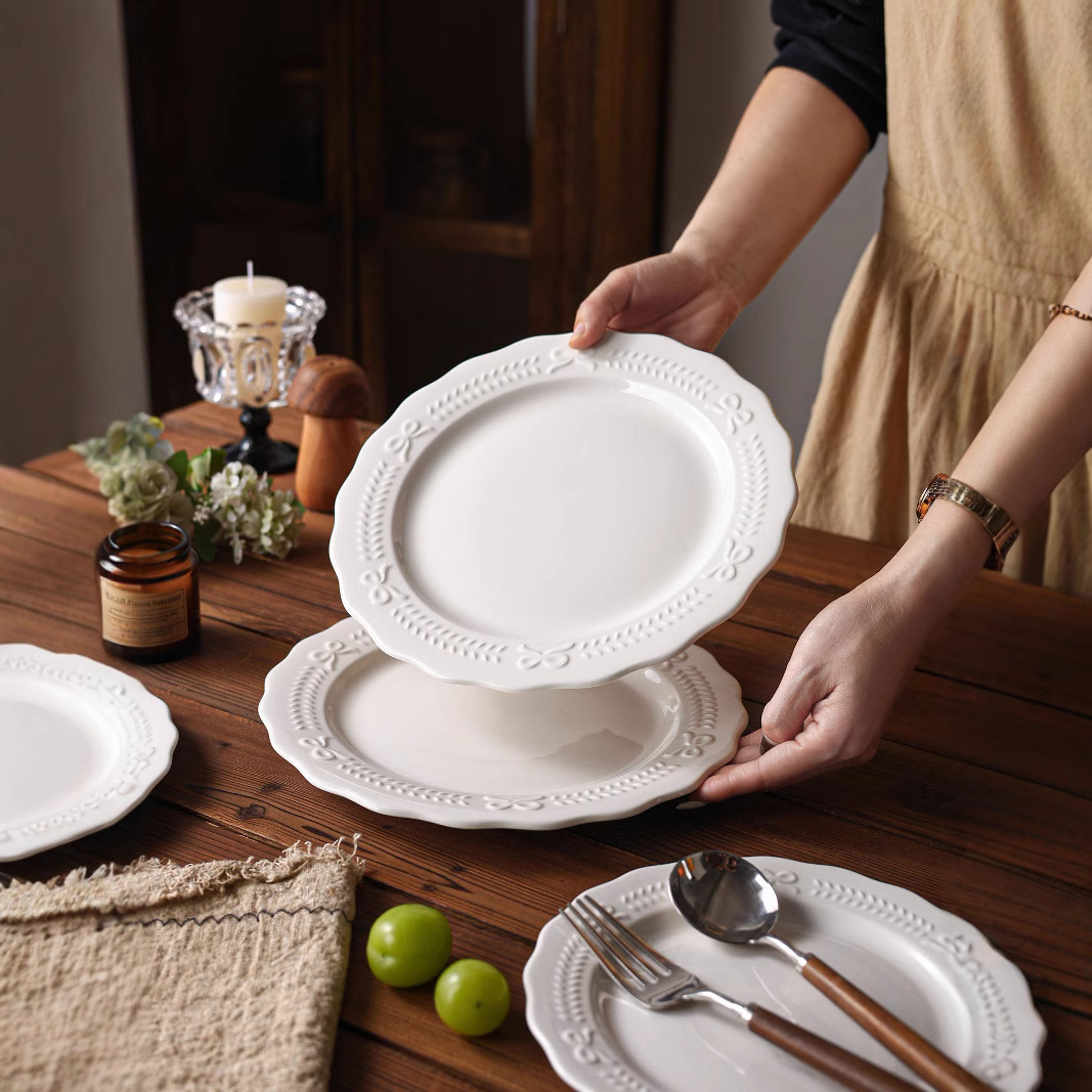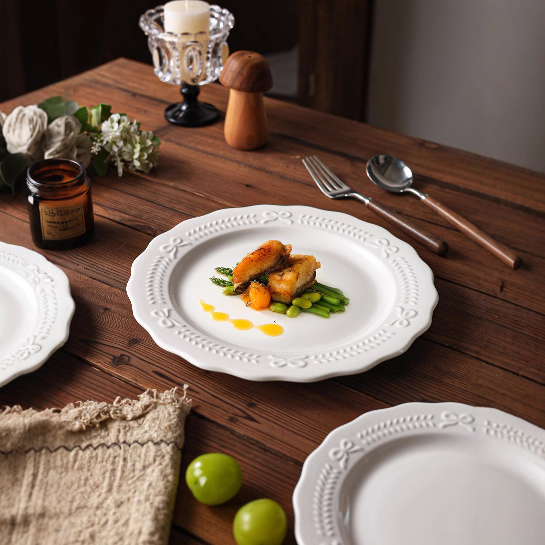 Piring Keramik Motif Pita Estetik / Piring Cantik Warna Putih Gaya Eropa