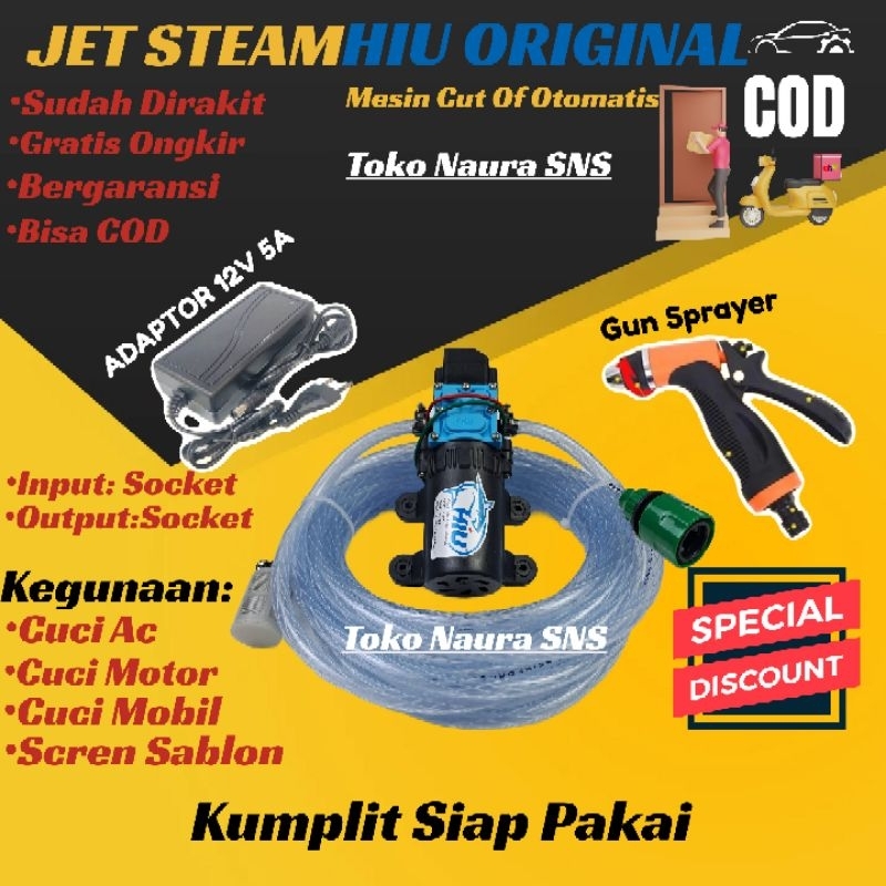 High Pressure Set Steam Hiu / Alat Cuci Motor / Mobil / Dinamo Pompa Hiu 12V 5Lpm / Jet Gun Tabung