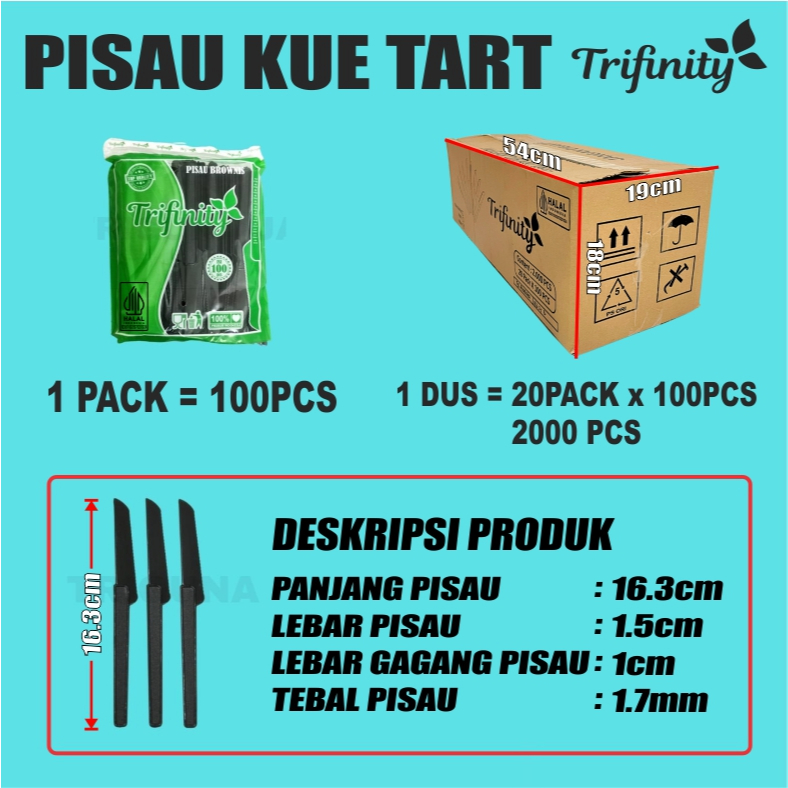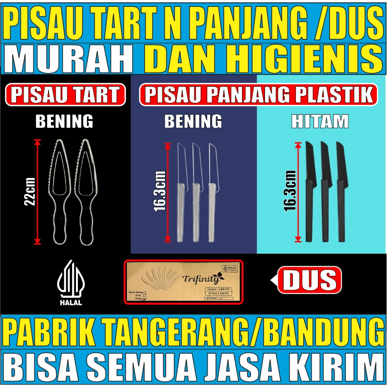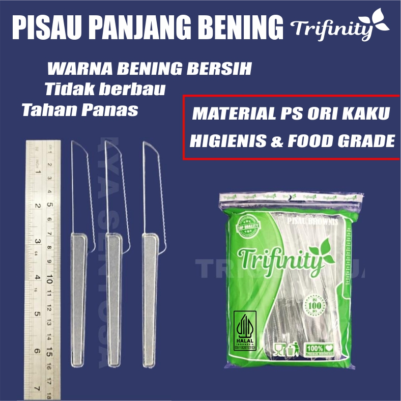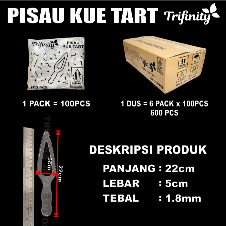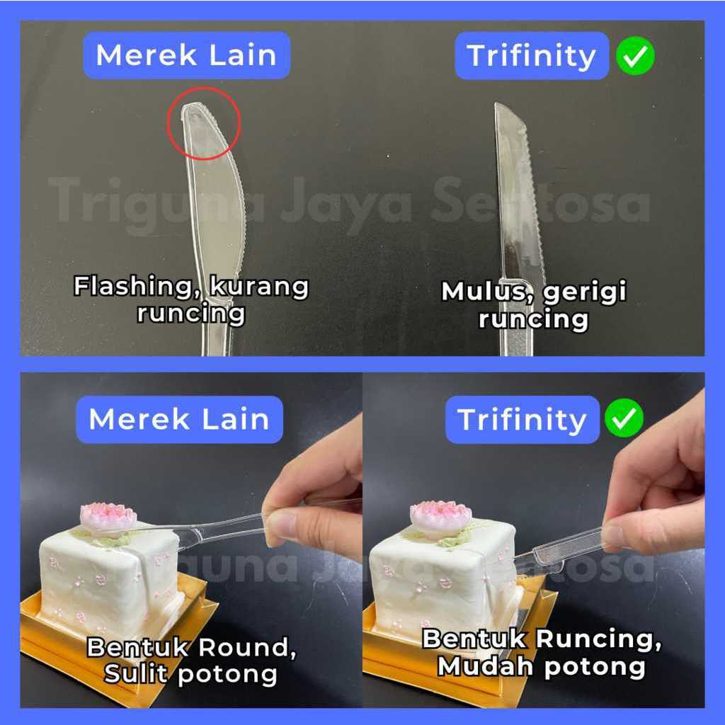 ( HARGA PROMO ) Trifinity Pisau Kue Tart Cake Ulang Tahun HALAL/ Pisau Plastik Panjang Hitam Bening Murah Dus JsKrm