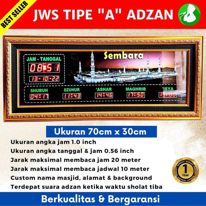 Jam Masjid Bisa Suara Adzan Jadwal Sholat Digital Suara Adzan 70 cm x 30 cm Bisa Request Nama masjid