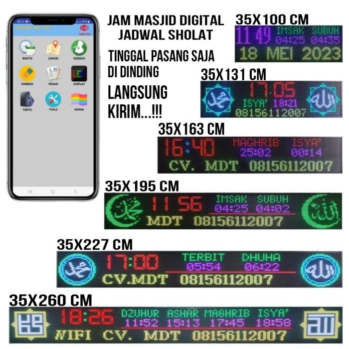 Jam Masjid Digital Waktu Sholat Jws Tinggal Pasang P10 RGB - 2 BARIS