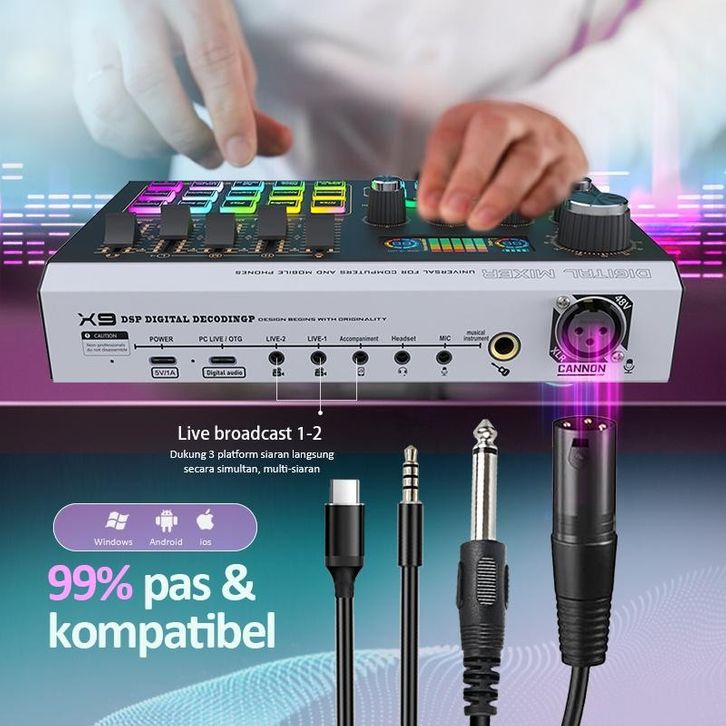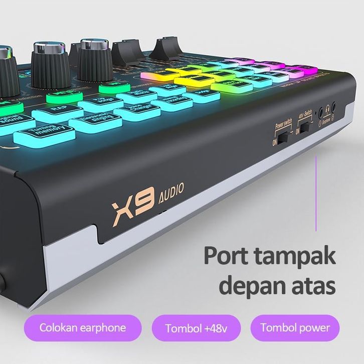 Grosir IDEELAB X9 Live Soundcard 48V Mixer Audio USB External Sound Card mic Mixer Bluetooth phone PC Elegan