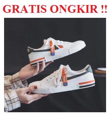 SEPATU KANVAS WANITA PEREMPUAN SNEAKERS WANITA CASUAL MOTIF LIST FASHION TERBARU ASLI IMPOR