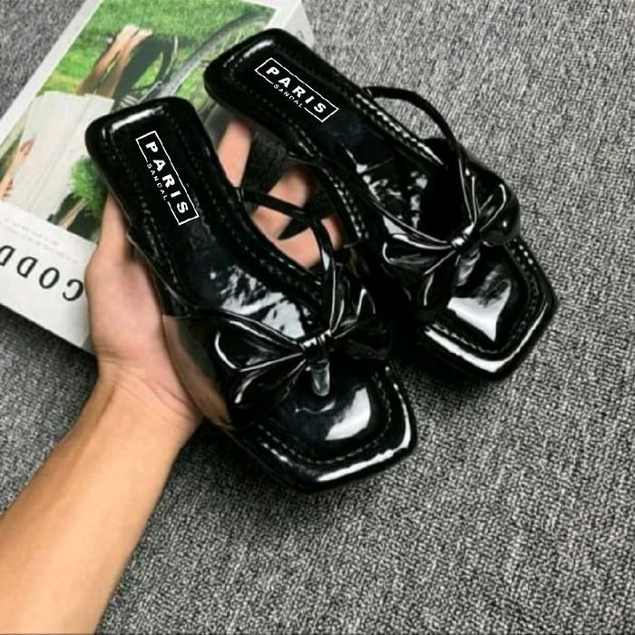 Sandal Platform Wanita Sandal Teplek POPULER Sendal Selop Jepit Kekinian - Hitam 37