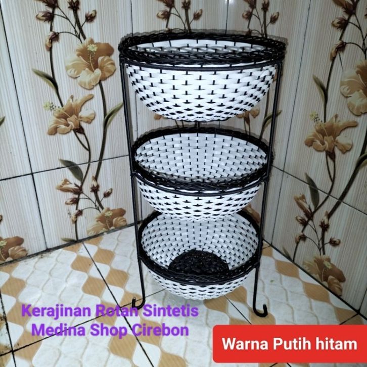 TERMURAH PROMO (Free Babblewarp) RAK BAWANG / TEMPAT WADAH BUMBU DAPUR ROTAN SINTETIS SUSUN 3 ( Model Baru bisa