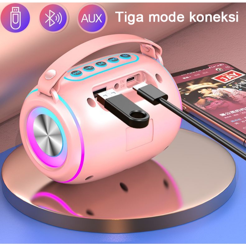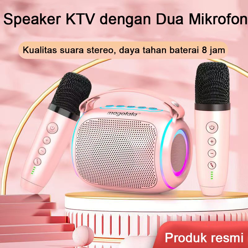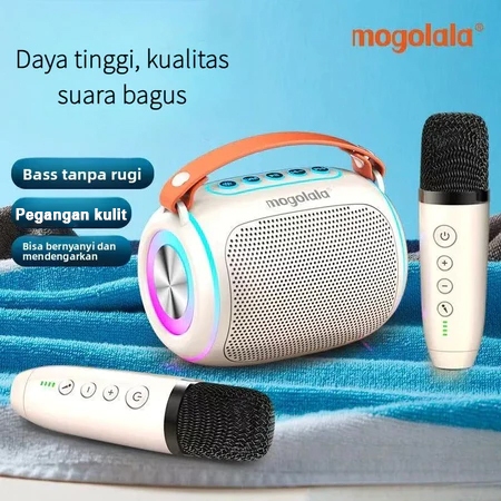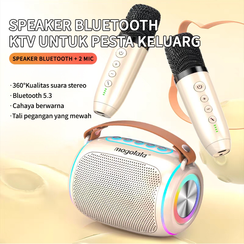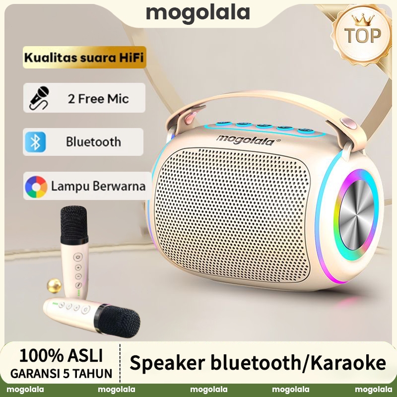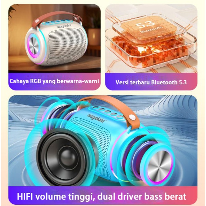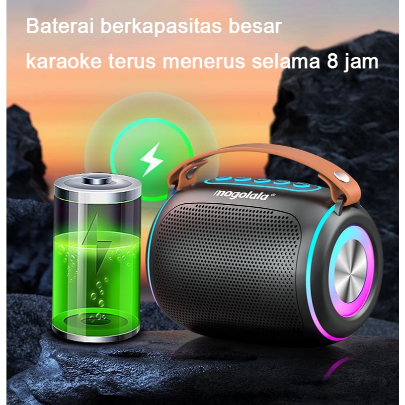 MOGOLALA Speaker Bluetooth Karaoke Portable Nirkabel Full Bass + Bonus Microfon & Lampu RGB warna-warni