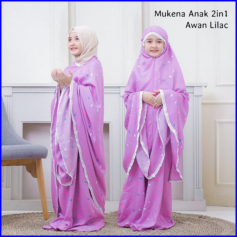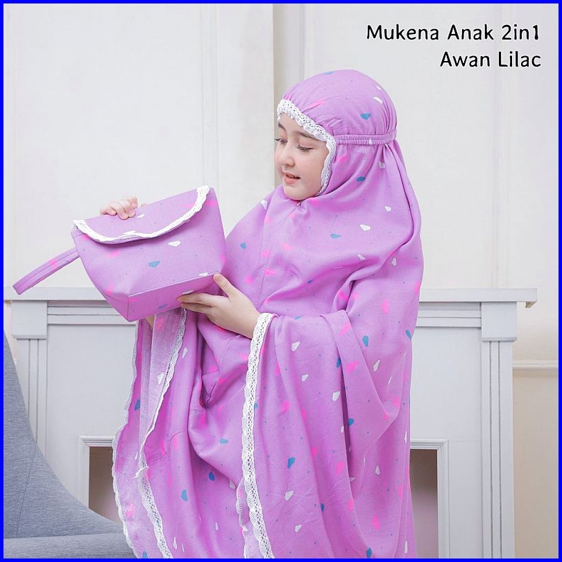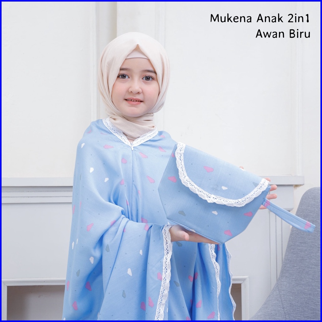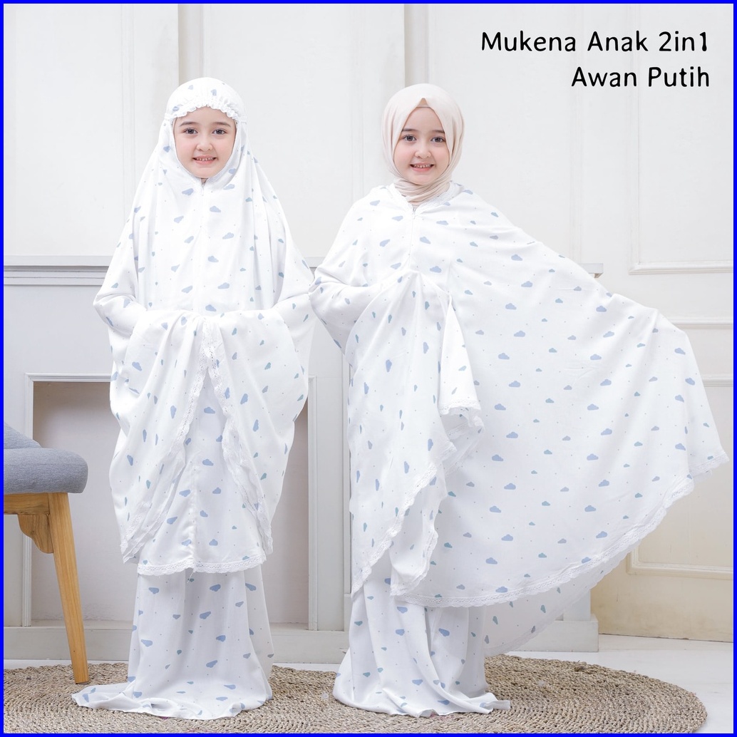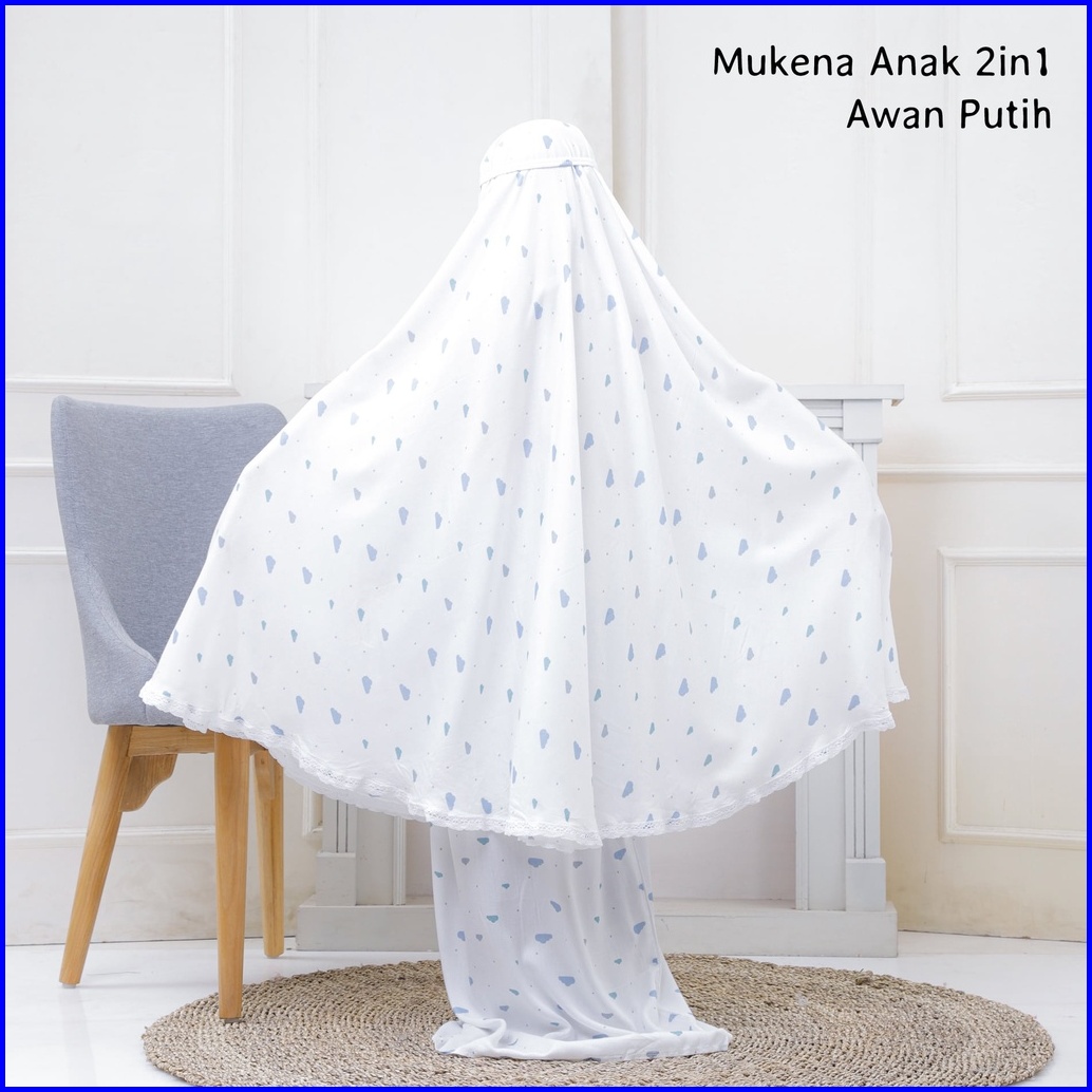 Pusat Mukena Indonesia - Mukena Anak Tanggung 2in1 Rayon Motif Awan