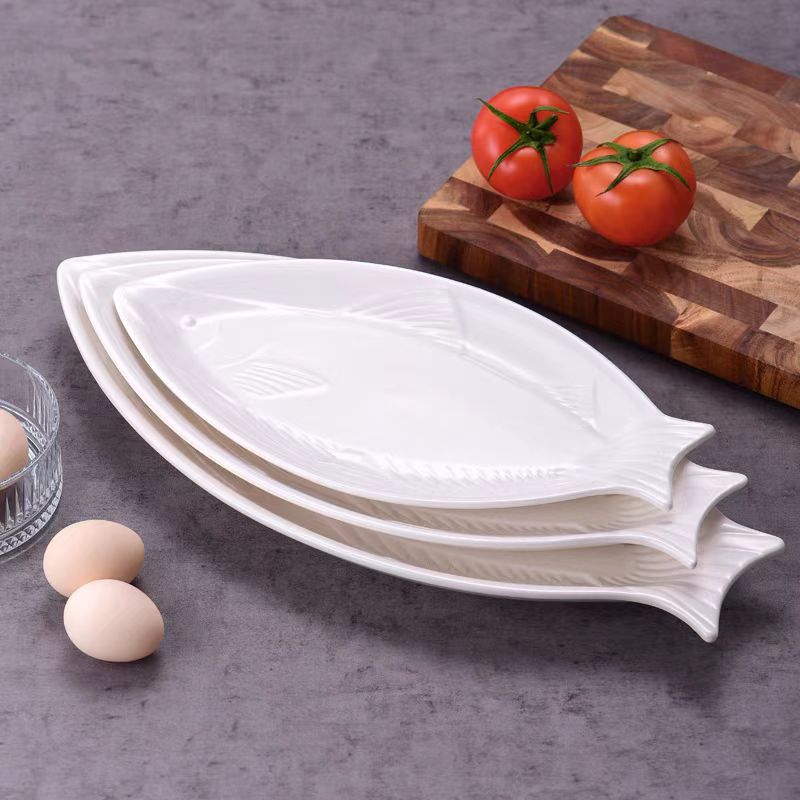 Piring Oval Model Ikan Keramik Unik Hotelware Tebal Putih Piring Saji Besar Fish Tray Modern
