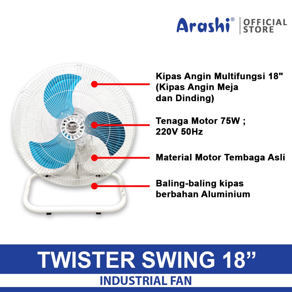 NEW ORIGINAL Arashi Twister Swing 18" Kipas Angin Besi Duduk / Lantai 2 in 1