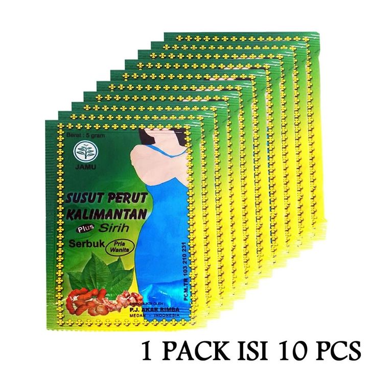 Herbal Nusantara Jamu Susut Perut Kalimantan Serbuk Plus Sirih Obat Pelangsing Pelancar BAB - 10 Pcs