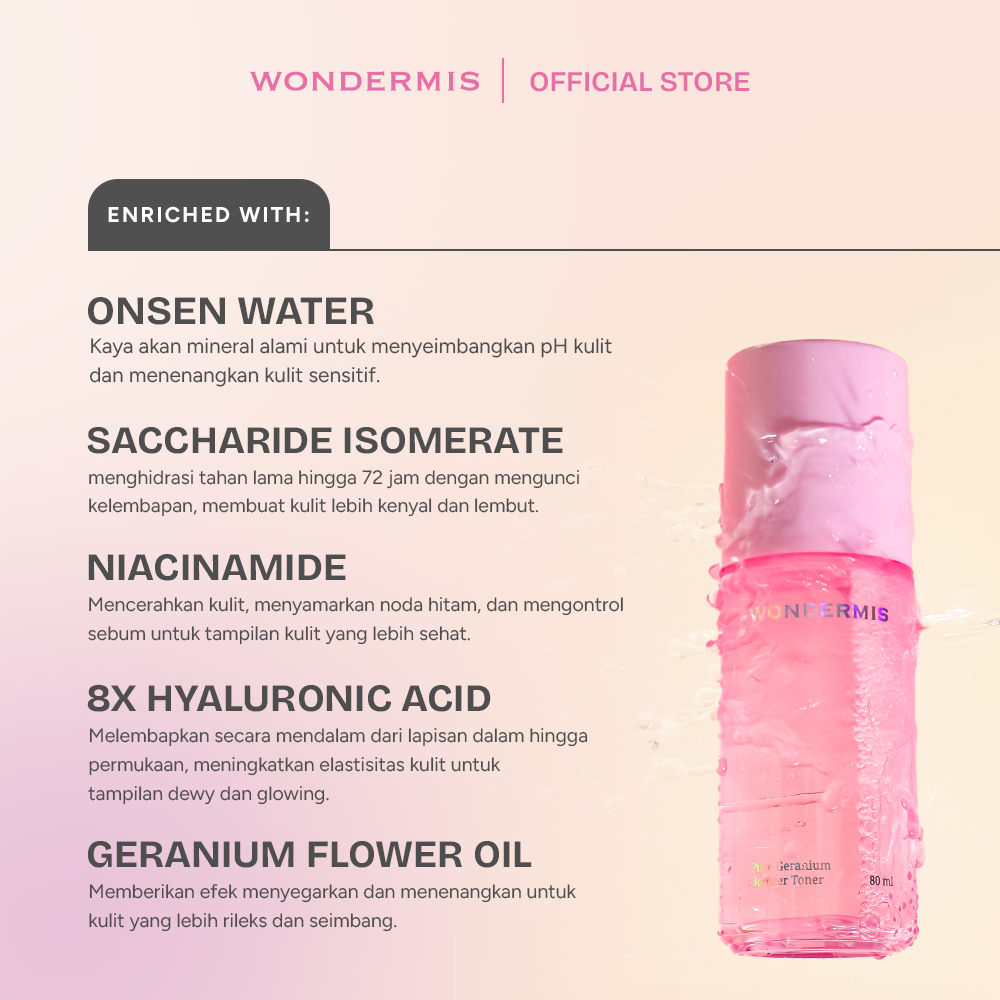 WONDERMIS - Pure Geranium Booster Toner I 80ml I Calming Brightening Soothing Glowing Moisturizing Skin Barrier Collagen