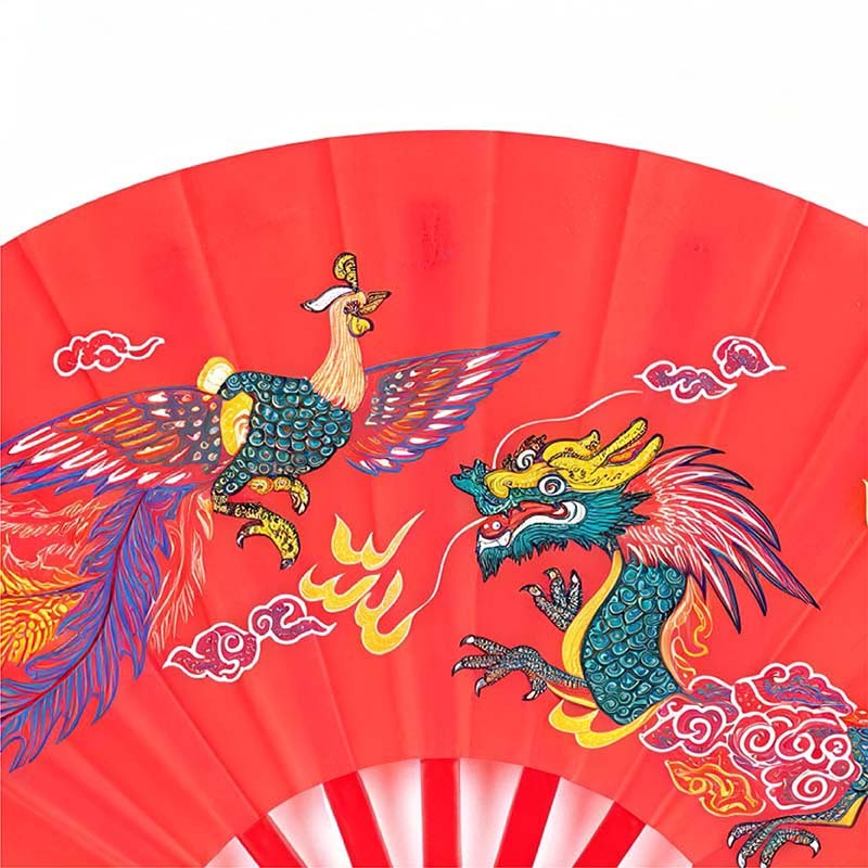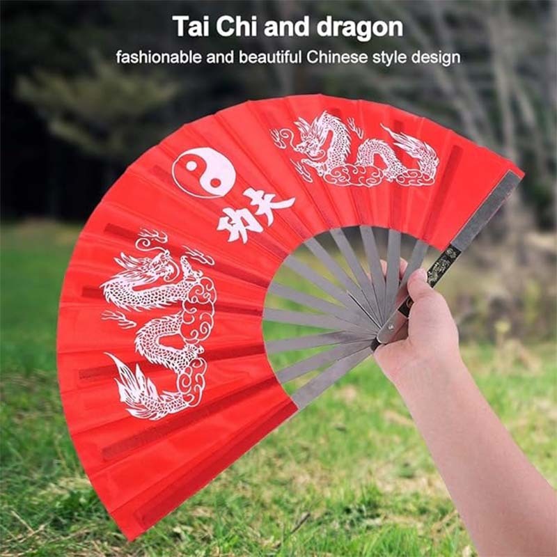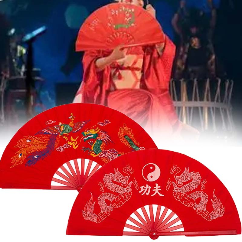 Kipas Taichi Merah 65cm/Kipas Wushu/Kipas Merak/Kipas Merah Tari/Kipas Silat Taichi Naga Kungfu