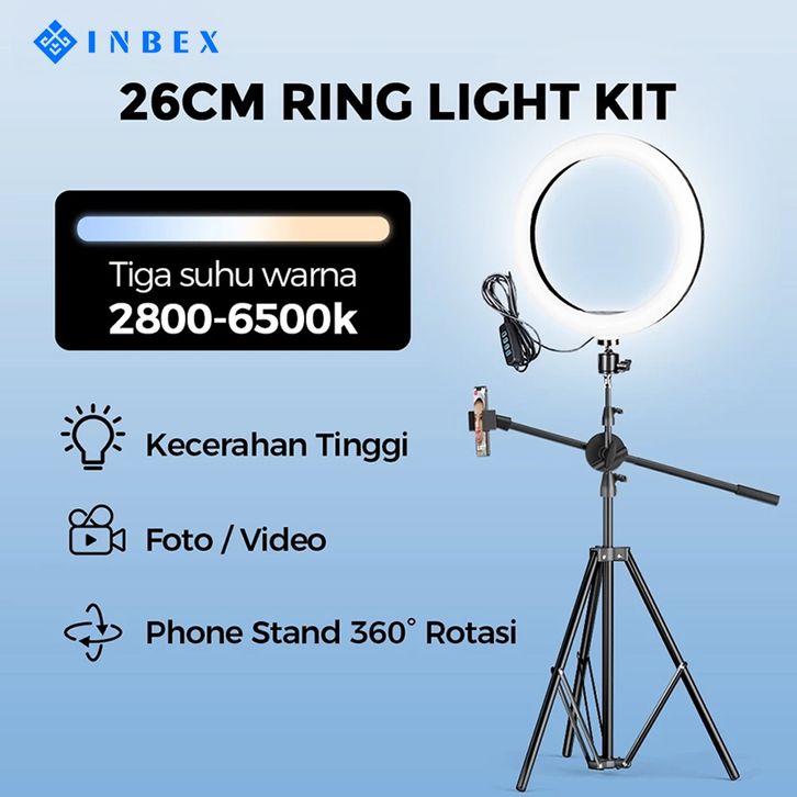 INBEX Ring Light 26CM konten kreator 210CM triP00D IPL16 lampu PH3 stand holder hp Tiga 3 warna triP00D handphone