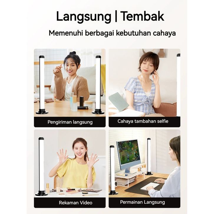 ()Lampu Ring Light LED 2 Baris untuk Live Streaming - Pencahayaan Wajah Profesional, Pencahayaan Rambut Dewi, Lampu Mej