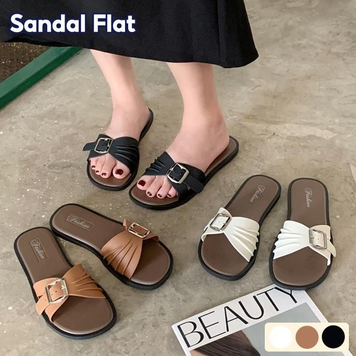 Sandal Wanita / Sandal Teplek Wanita / Sandal Slop / Sandal Wanita Elegan / Sandal Wanita Korean Style - Hitam 36/37