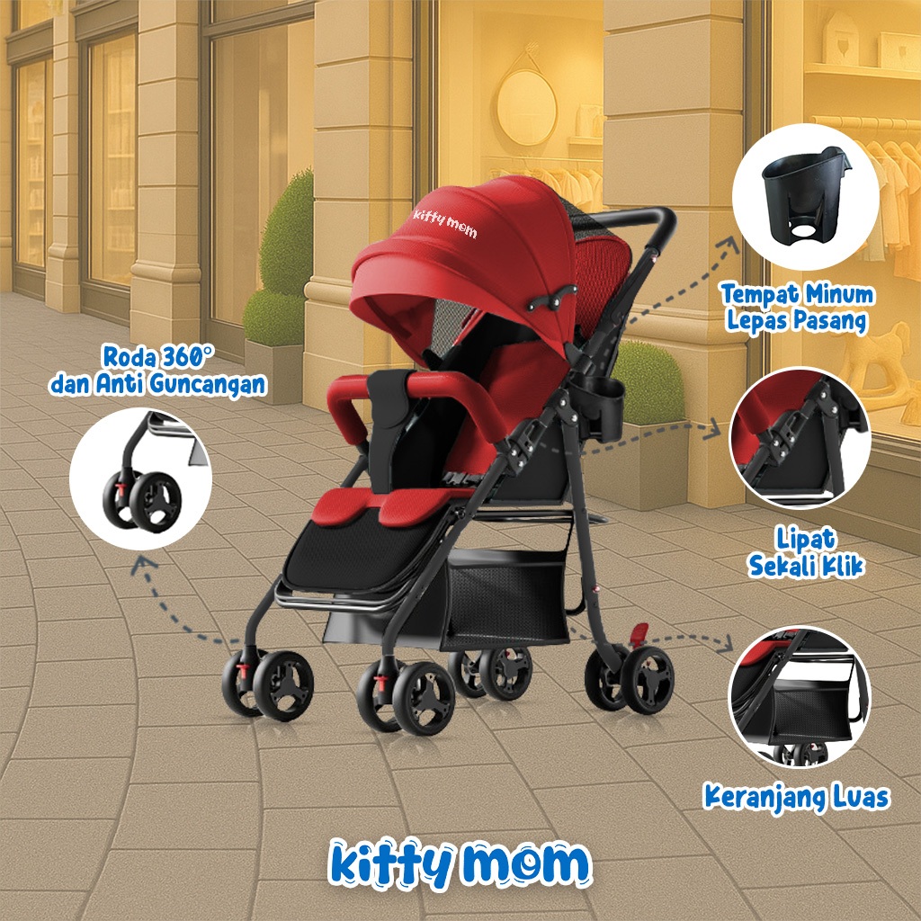 KITTY MOM Stroller Bayi Lipat Travelling 2 Arah Babyplay Stroller Newborn Cabin Size PRODUK ASLI ORIGINAL TERLARIS