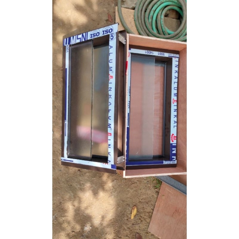 Boven /jendela aluminium T30xL60 dua pilihan kaca mati zigzag angin dan kaca mati full tersedia warna putih,coklat, h