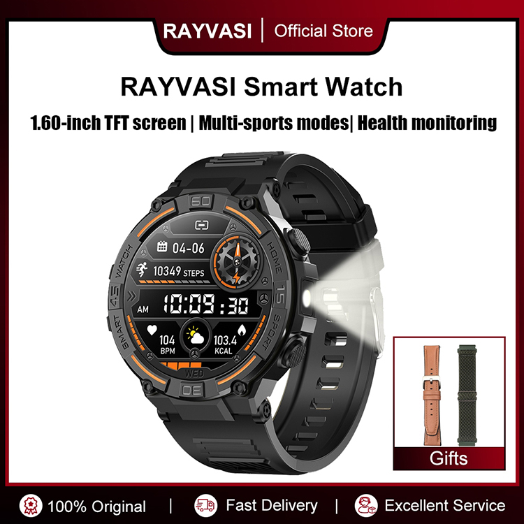 RAYVASI HW50 SmartWatch Pria LED Flashlight Jam Running Pria Bluetooth Call 100+ Sport Mode Heart Rate Jam Pintar