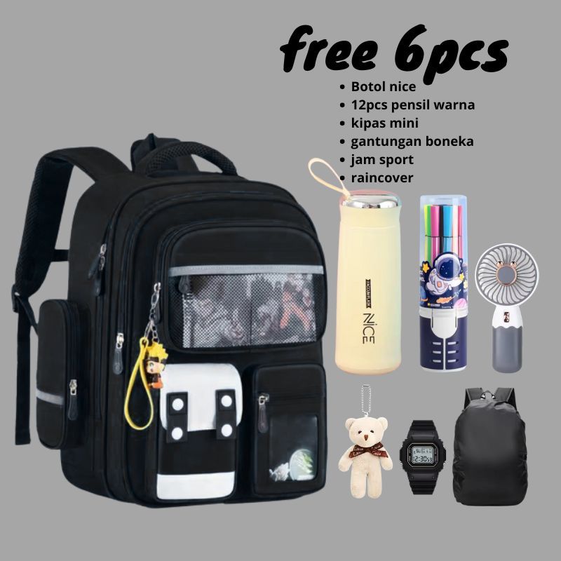 FREE 6pcs Ransel Siswa Anak SD SMP,Tas Sekolah Anak Laki Laki Ransel Anak Perempuan Tas Sekolah Anti Air Ransel Sekolah