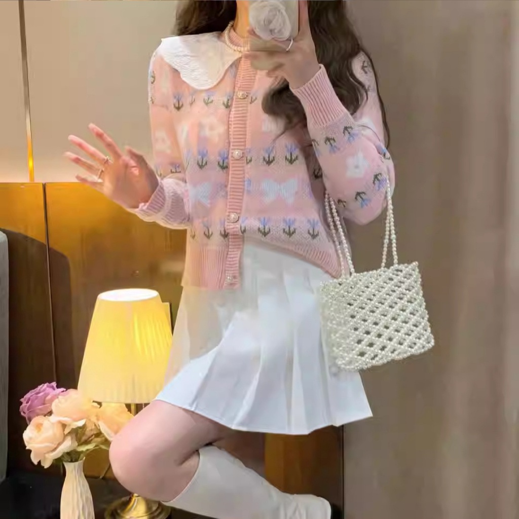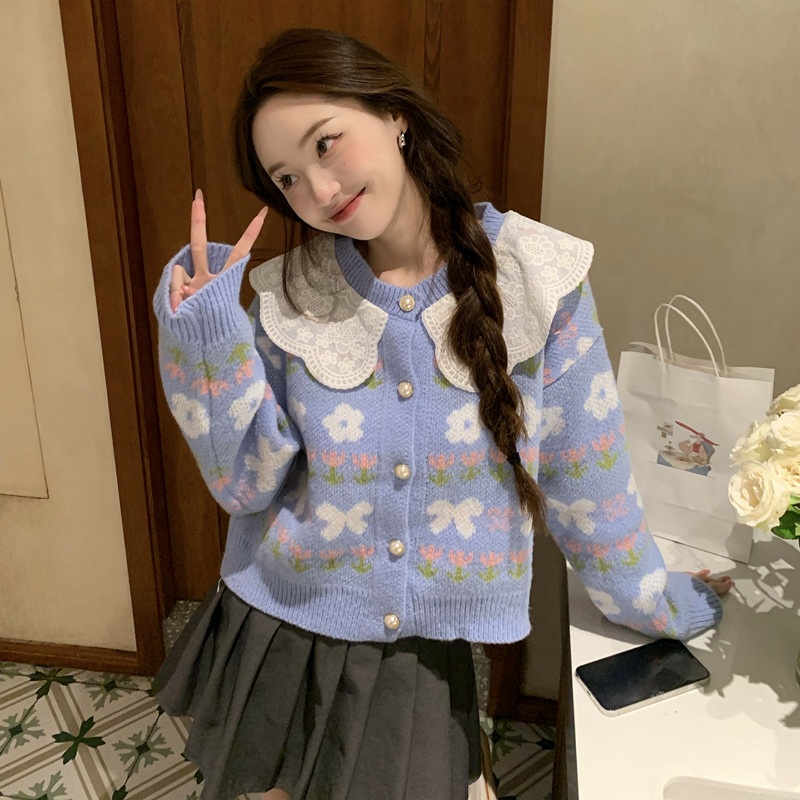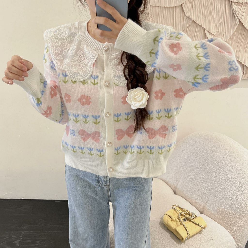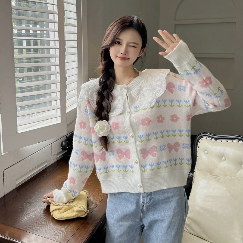 Cardigan Harumi Lace Collar Knit Import