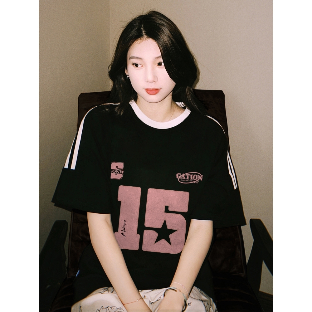 Baju Wanita Putih Black Kaos Premium Lengan Pendek Oversize Dengan Tiga Garis Dan Nomor Atasan Wanita Kekinian