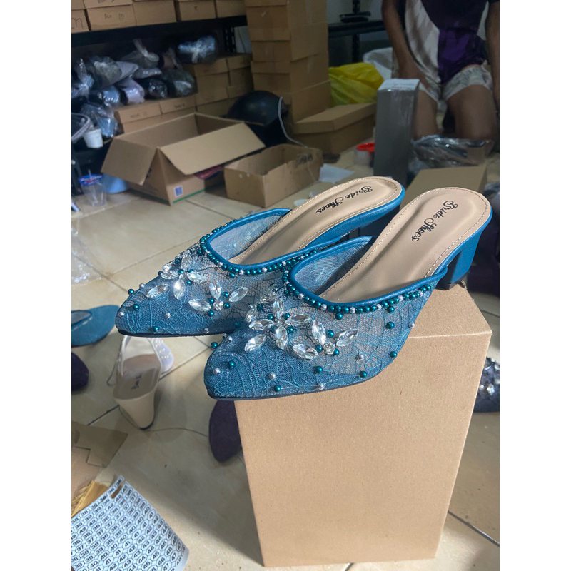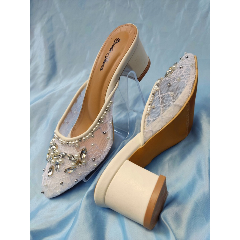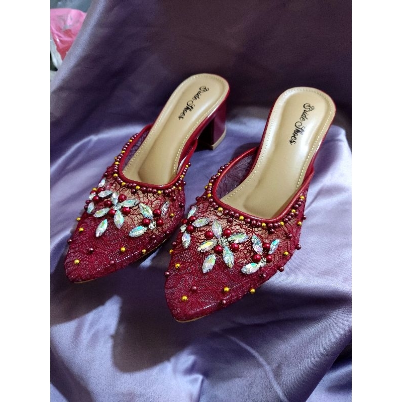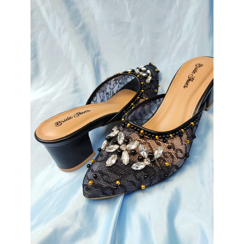 BRIDE SHOES 5cm selop cantik payet slop manten slop wisuda sandal pengantin brokat