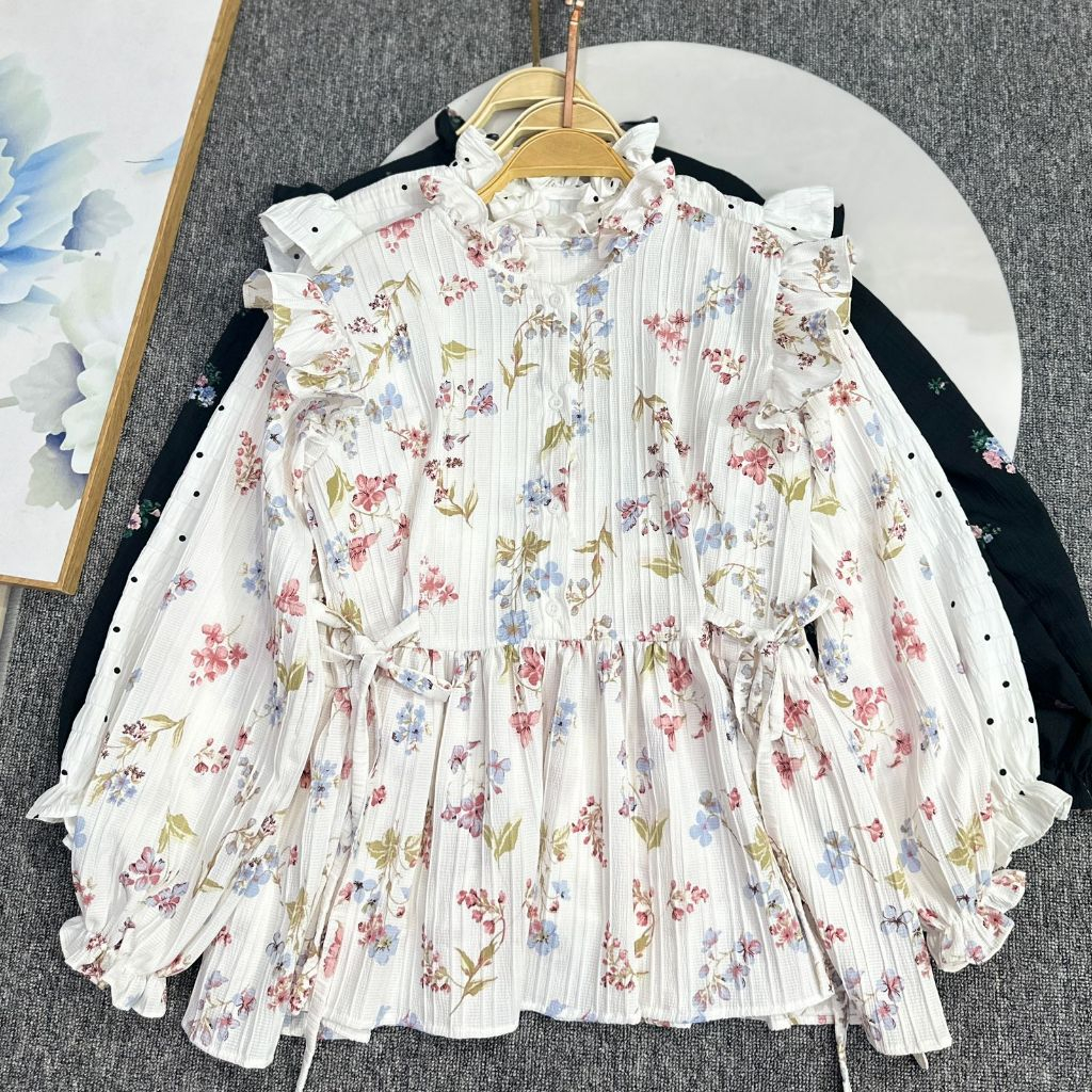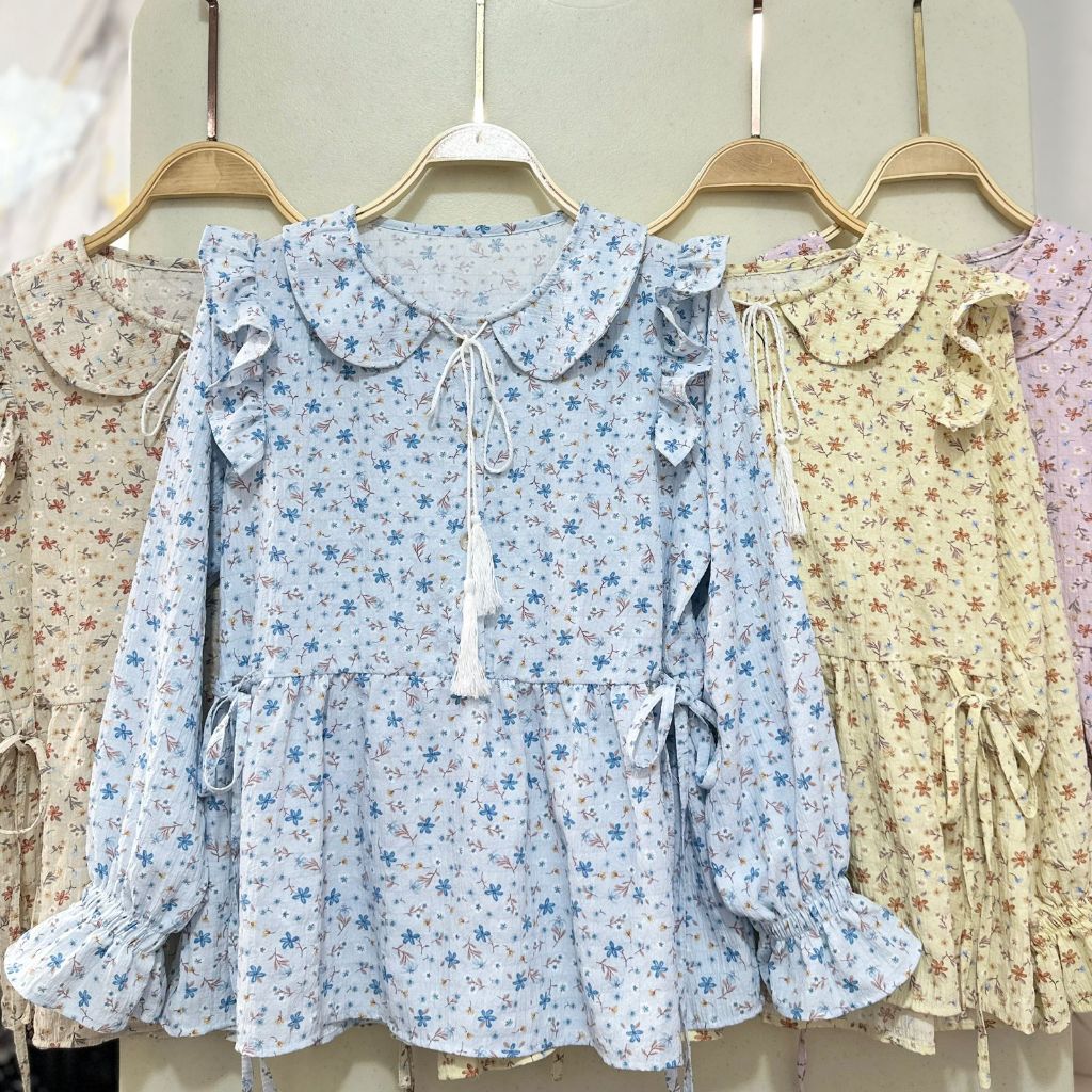 Blouse Atasan Wanita Lengan panjang Motif Flowers