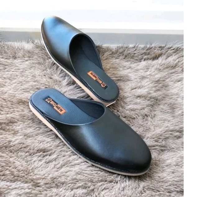 SLop kejawen kulit pria.HITAM Alas kuning karet [ TREPES ]