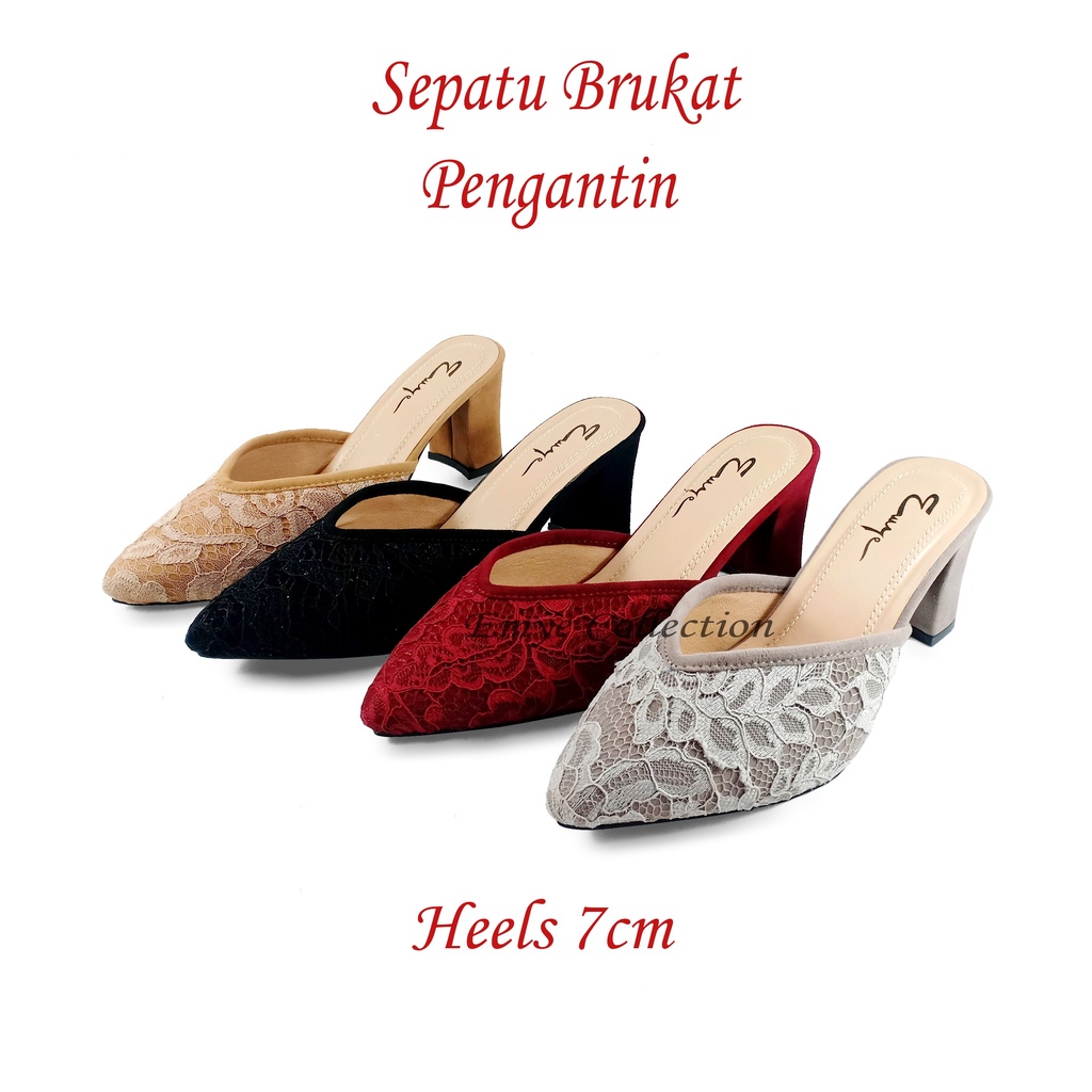 Emye EM01- Sepatu Sandal Heels Brukat Wedding Pesta Wanita Hak 7cm