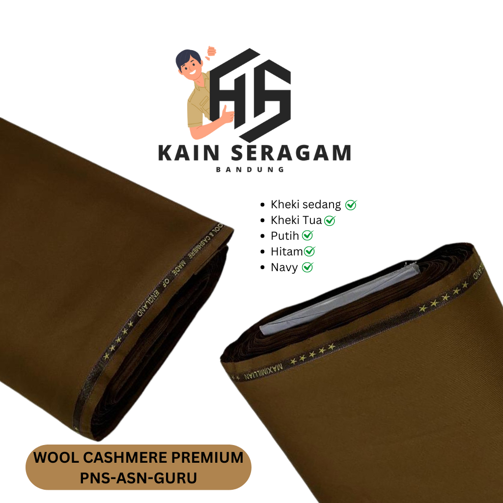 BAHAN KAIN KHAKI PREMIUM WOOL AND CASHMERE / CATTON FULL DINAS PNS/ASN/PDH