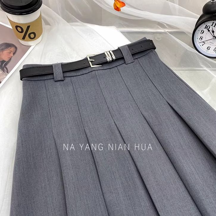 Promo Rok Wanita Rok Setelan A-line Abu-abu Rok 7/8 Panjang Wanita Rok Berlipat Pinggang Tinggi Pembentuk Tubuh Kasual