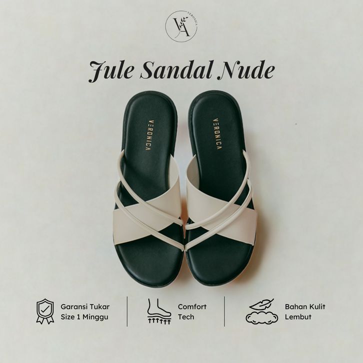 Promo Sandal Wanita VERONICA Jule Sandal Nude - Flat Shoes Heels Slippers Sandal Wanita Nyaman & Lembut