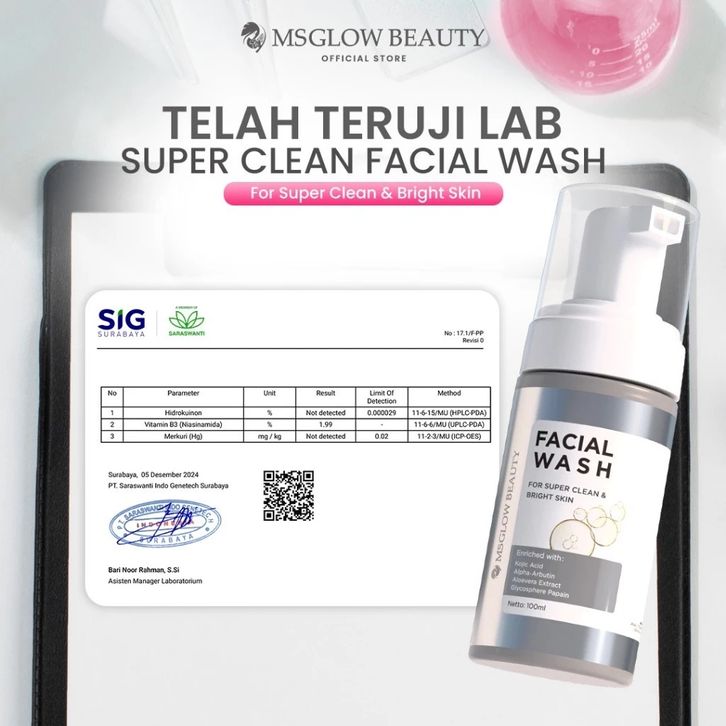 sabun pemutih MS GLOW - FACIAL WASH SUPER CLEAN - BRIGHTENING - GLOWING - 100 ml - Sabun Wajah Glowing dan Putih Bebas