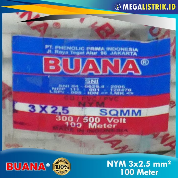 BUANA KABEL NYM 3X2.5 ( 100M ) / KABEL LISTRIK PUTIH KAWAT TEMBAGA 3 X 2.5 MM ( 100 METER )