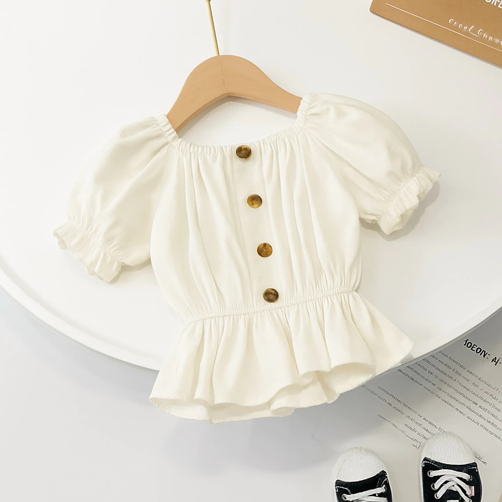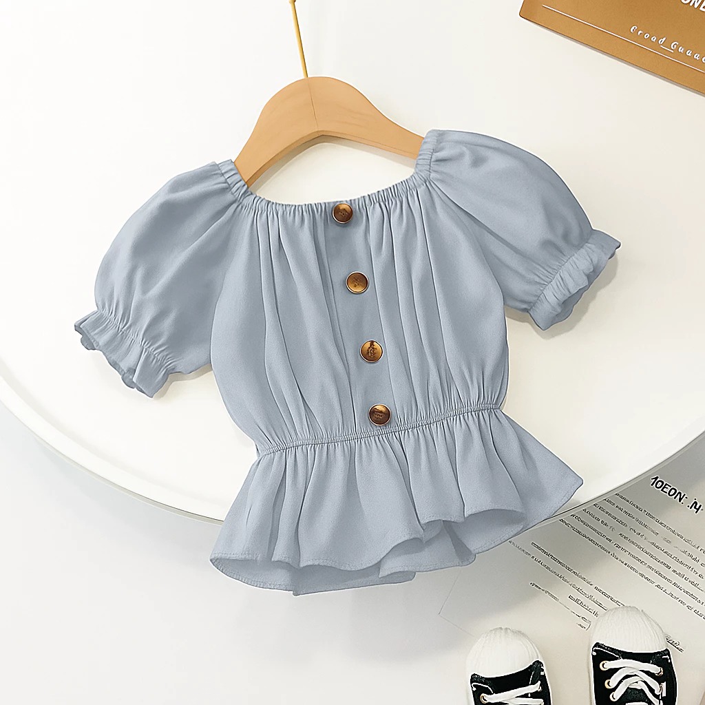 Baju Atasan Anak Perempuan Sabrina Kerut Umur 1 - 8 Tahun | Blouse Airflow Style Anak Lengan Pendek