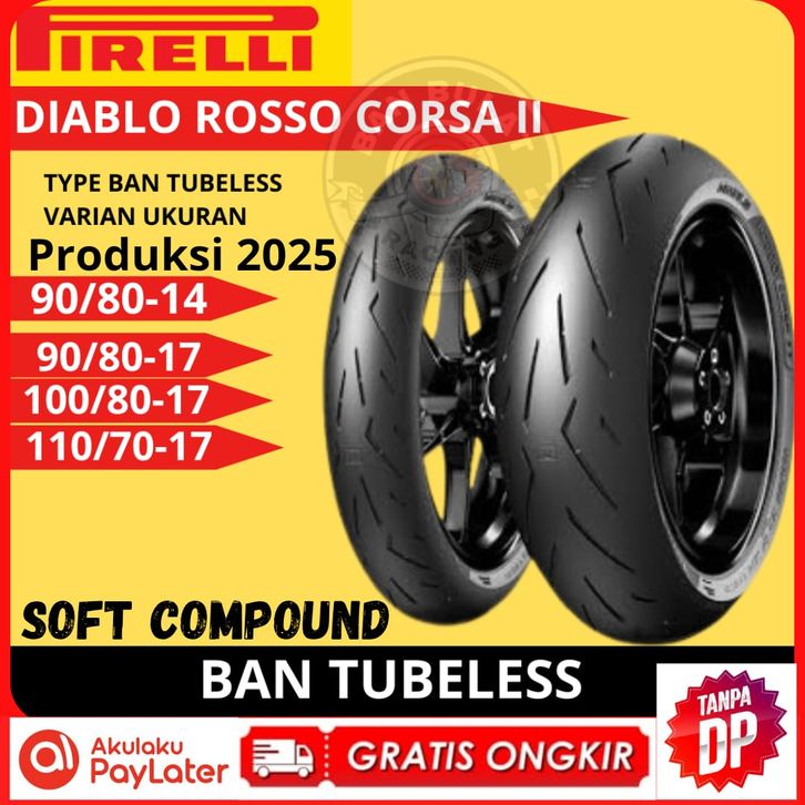 Ban Tubeless PIRELLI DIABLO ROSSO CORSA II Ring 17 Soft Compound Ban Depan Atau Belakang Motor Bebek Sport