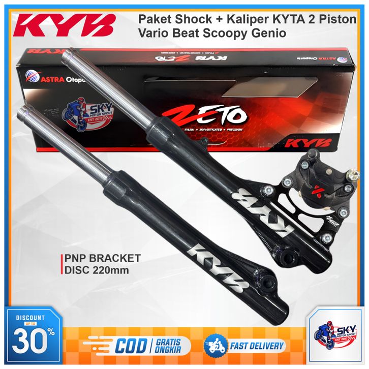 Paket Shock Depan Kayaba + Kaliper KYTA Vario Beat Scoopy Genio Plus Bracket 2 Piston Original