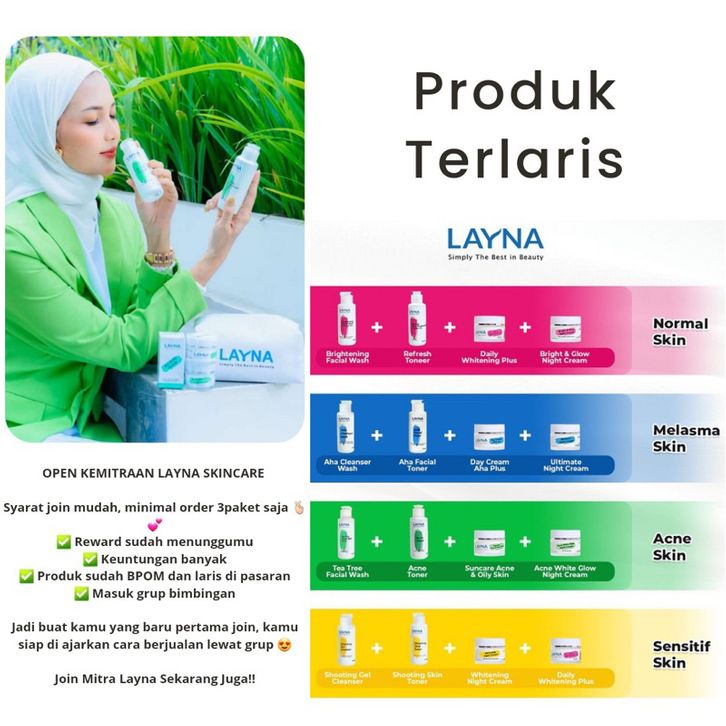 CREAM MALAM DNA, SUNCREEN, Moisturizer layna, SERUM BIO GOLD, TONER BRIGHT&GLOW, DAY CREAM DNA, SERUM ACNE, TONER DNA, Facialwash acne, CREAM MALAM AHA, Toner acne, CREAM MALAM ACNE, DAY CREAM AHA, SERUM DNA SALMON, DAY CREAM ACNE JRWAT, P.ULTIMATE LAYNA, SERUM BRIGHTENING, SERUM AHA BHA, Facialwash AHA, Facialwash brighten, P.DNA SALMON LAYNA, FACIALWASH DNA, Toner AHA flek, CREAM MALAM WHITE, PAKET DNA SALMON, PAKET ACNE LAYNA, DAY CREAM WHITENING, P.BRIGH&GLOW LAYNA