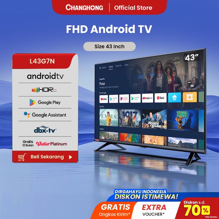 Changhong 43 Inch Newest Android 11 Frameless Smart TV Digital LED TV FHD -Netflix-Youtube-Google Playstore (L43G7N)