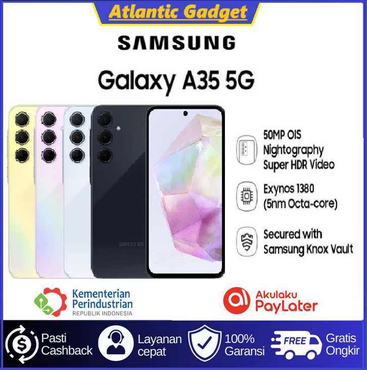 Samsung Galaxy A35 5G 8/256GB | Exynos 1380 | Layar 6.6" Super AMOLED 120Hz | 50MP Kamera | IP68 Tanah Air Dan Debu